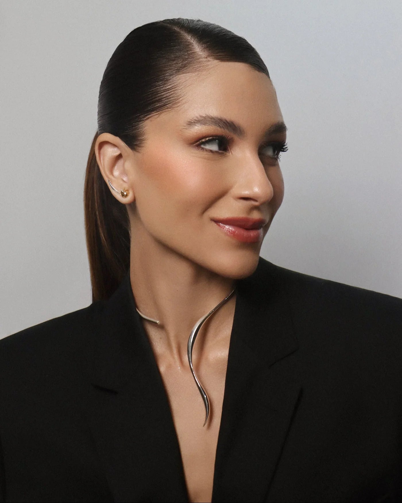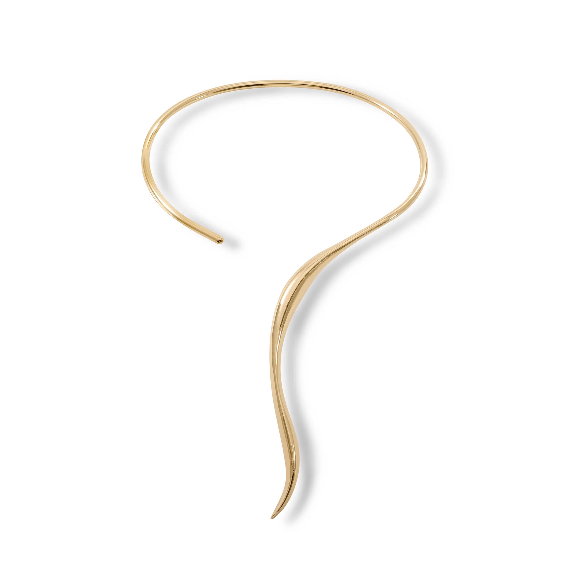 Gargantilla bañada en oro o plata con diseño de llama. Se ajusta perfectamente al cuello.